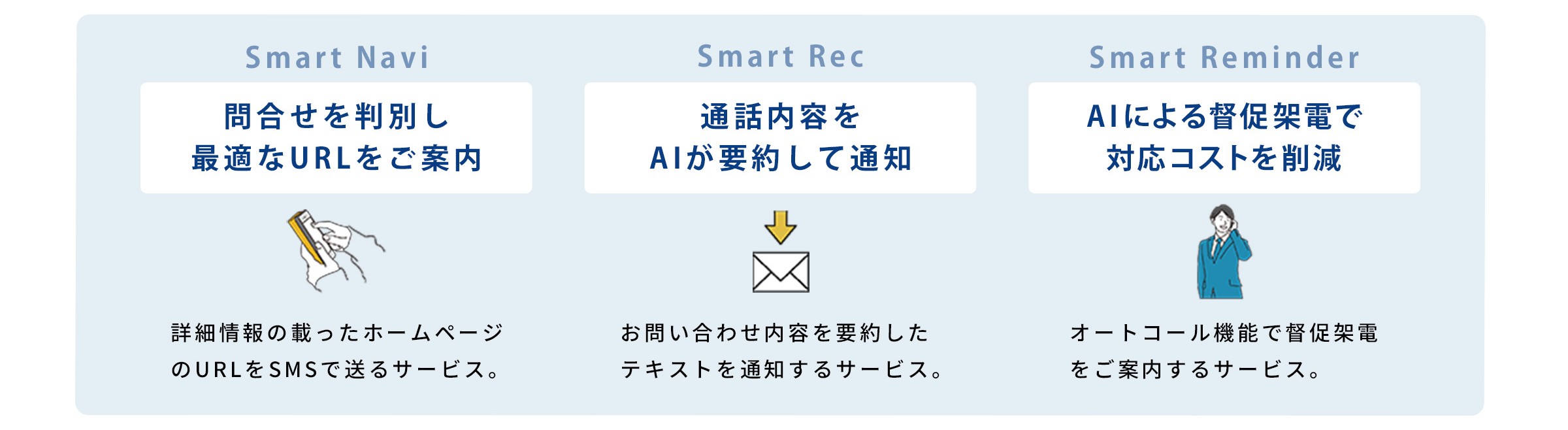 「問合わせ窓口」や「連絡窓口」などのコール数の軽減や最適化を目的として、様々な場面に活用する事ができます。